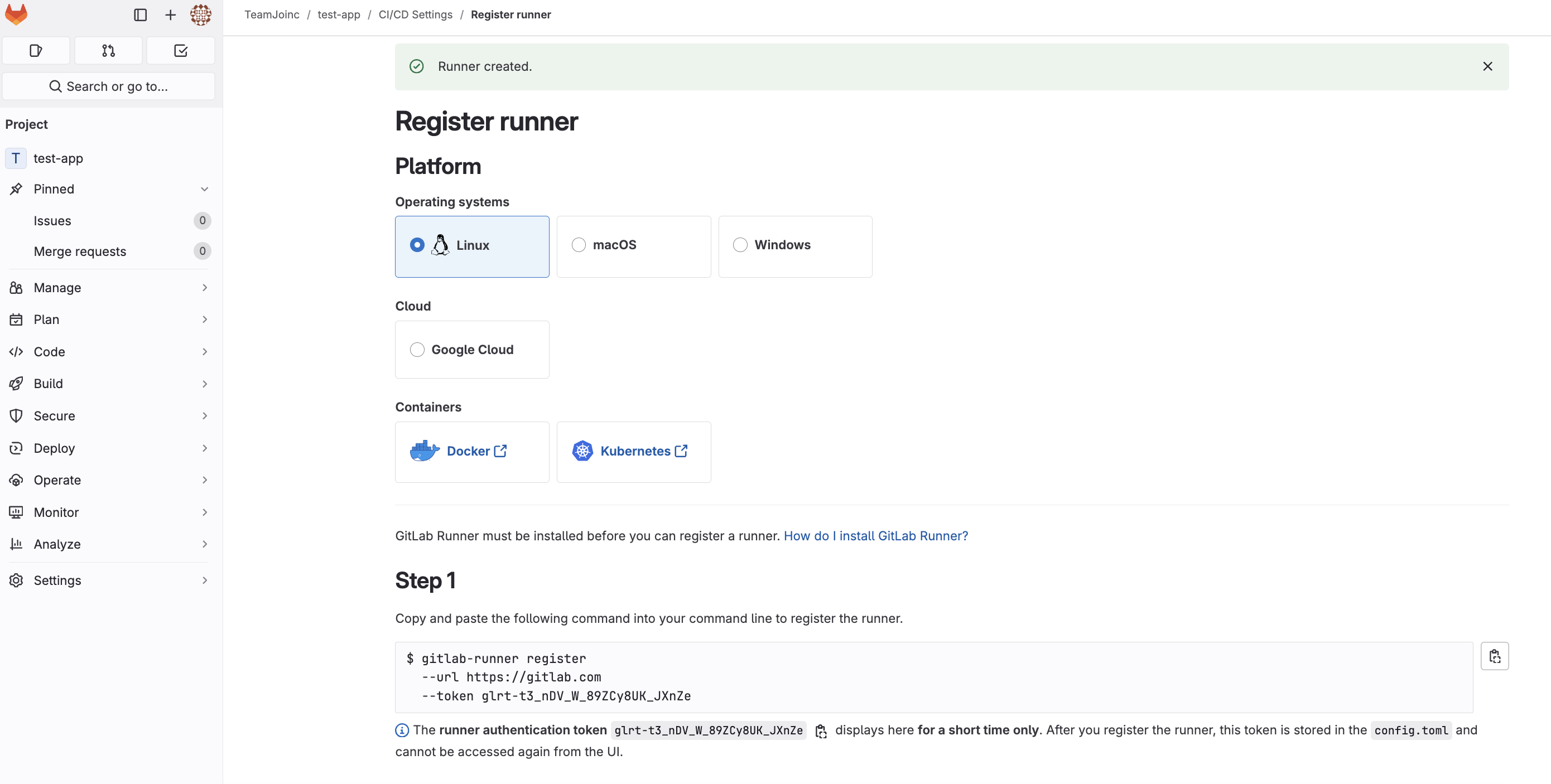 gitlab-runner를 로컬 서버에 다운받았으면 그 러너를 gitlab project repo에 등록해야 한다.