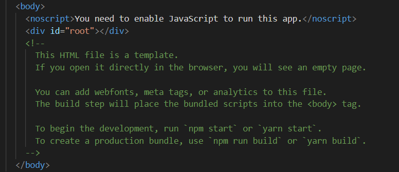 index.js에서는 id가 'root'인 DOM에 랜더링을 하도록 되어있다.