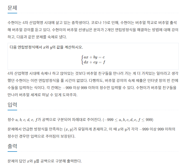 if((a*i + b*j == c) and (d*i + e*j == f)):